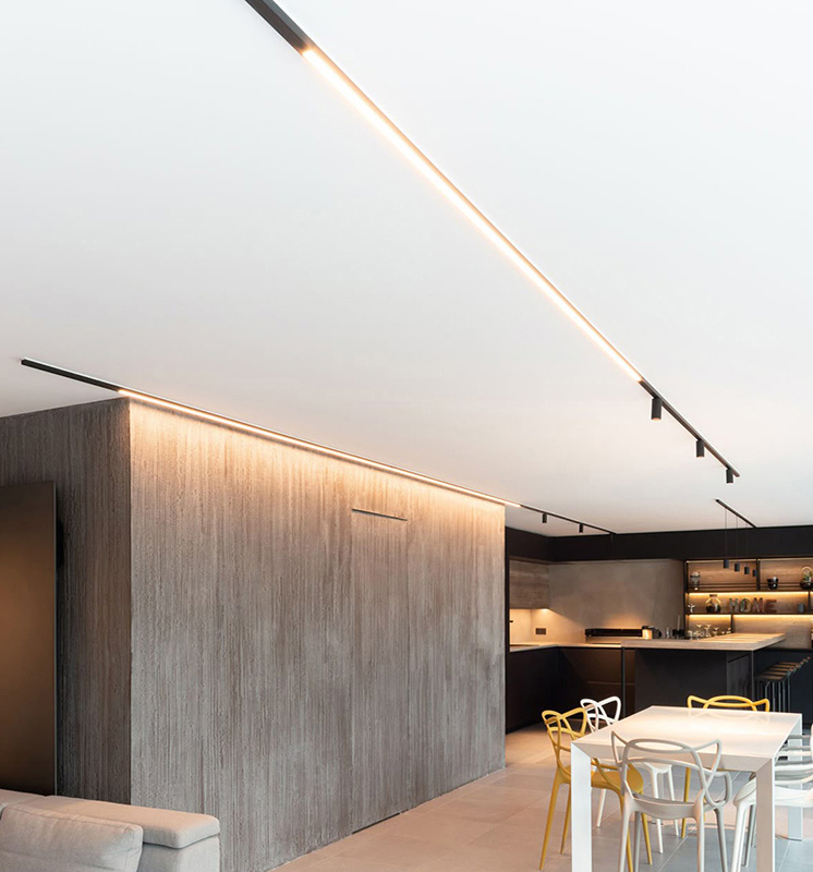 Design Tip: Use ultra slim linear modules or adjustable spotlights to maintain a clean ceiling profile, which helps small spaces feel more open.